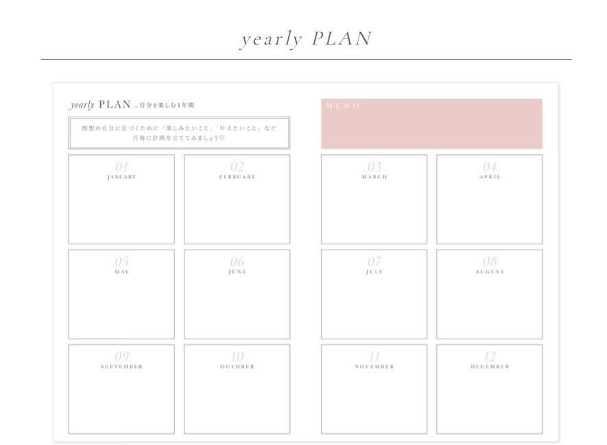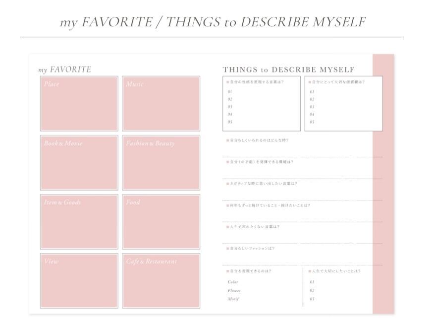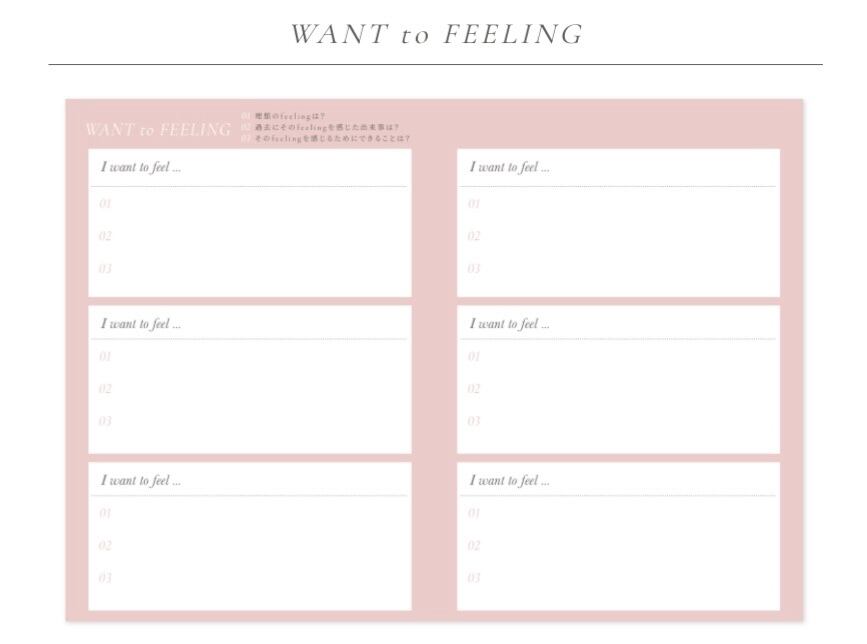 みんな、手帳で夢を叶えたりしているのは、書き出すこと、見ることで、その望みが潜在意識に届くからで、ページを追うごとに自然と理想を描きそして、現実世界に落とし込めるような仕組みになっております。